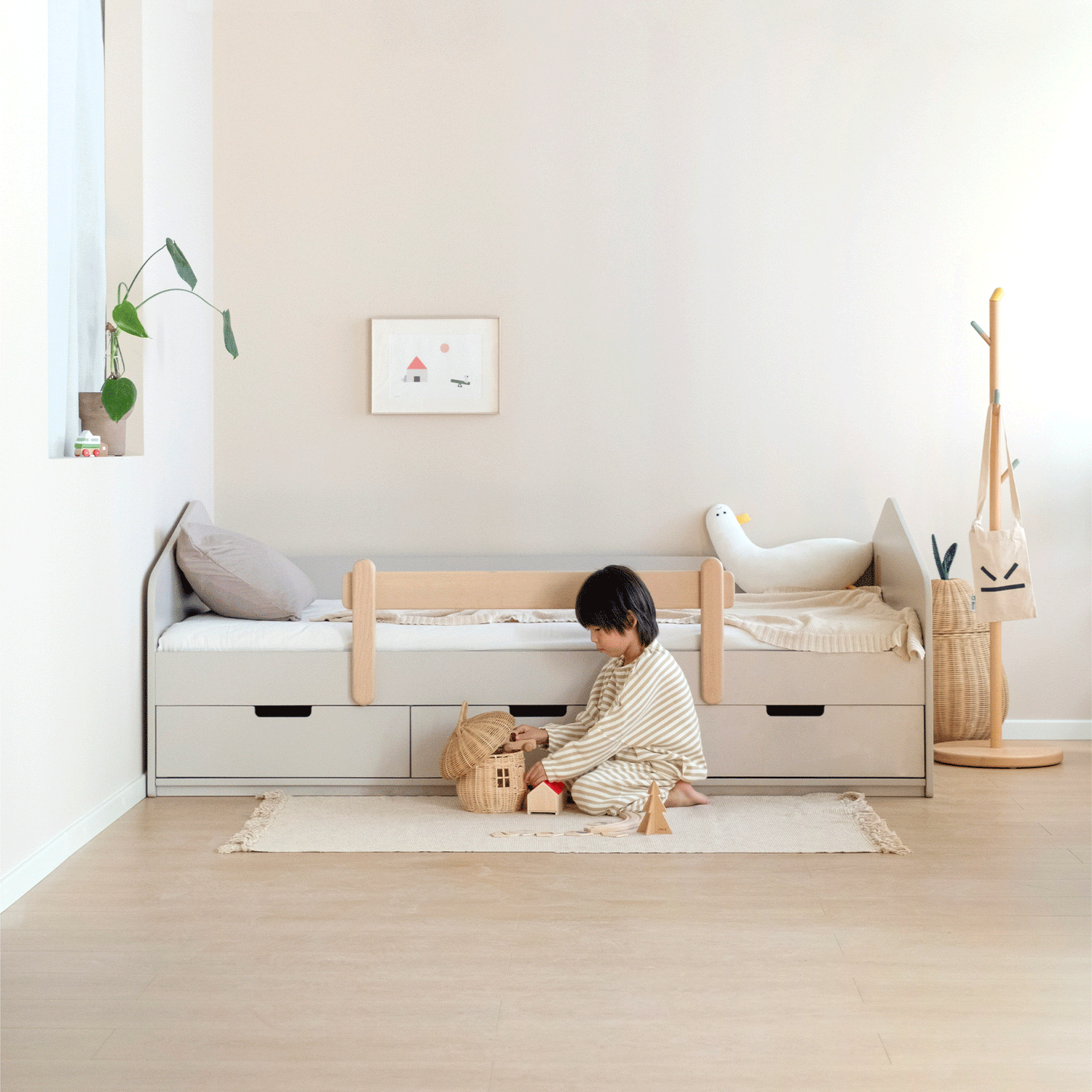 Looking for the modular bed system? Our most flexible Montessori range elevates from floor to regular bed height, with interchangeable headboards and storage accessories.