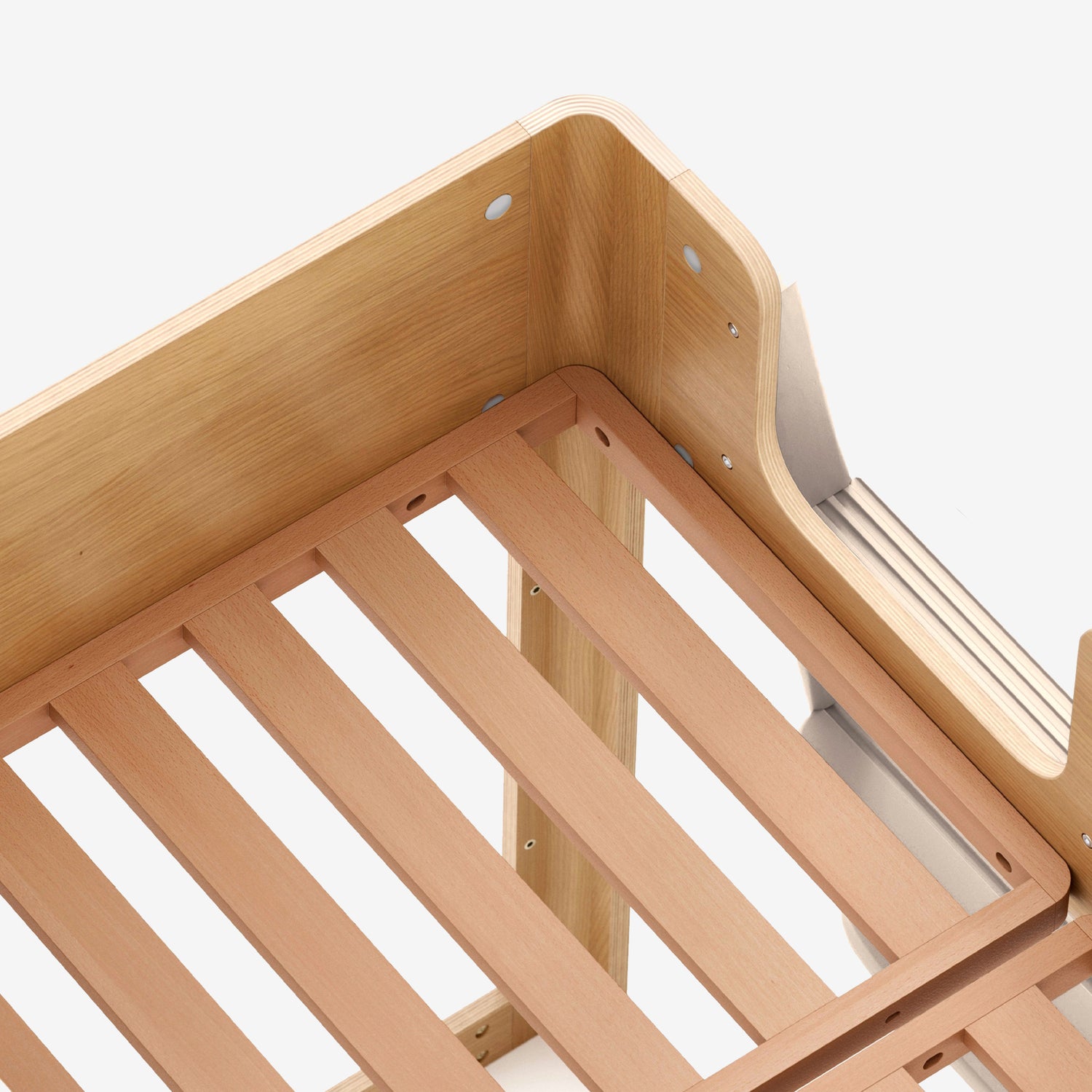 This bed is built to be a family keeper. The frame uses birch plywood, a structure that’s stable and highly resistant to cracking. It’s reinforced by silent, four-corner screw fixings, making the bed durable and quiet, year after year.