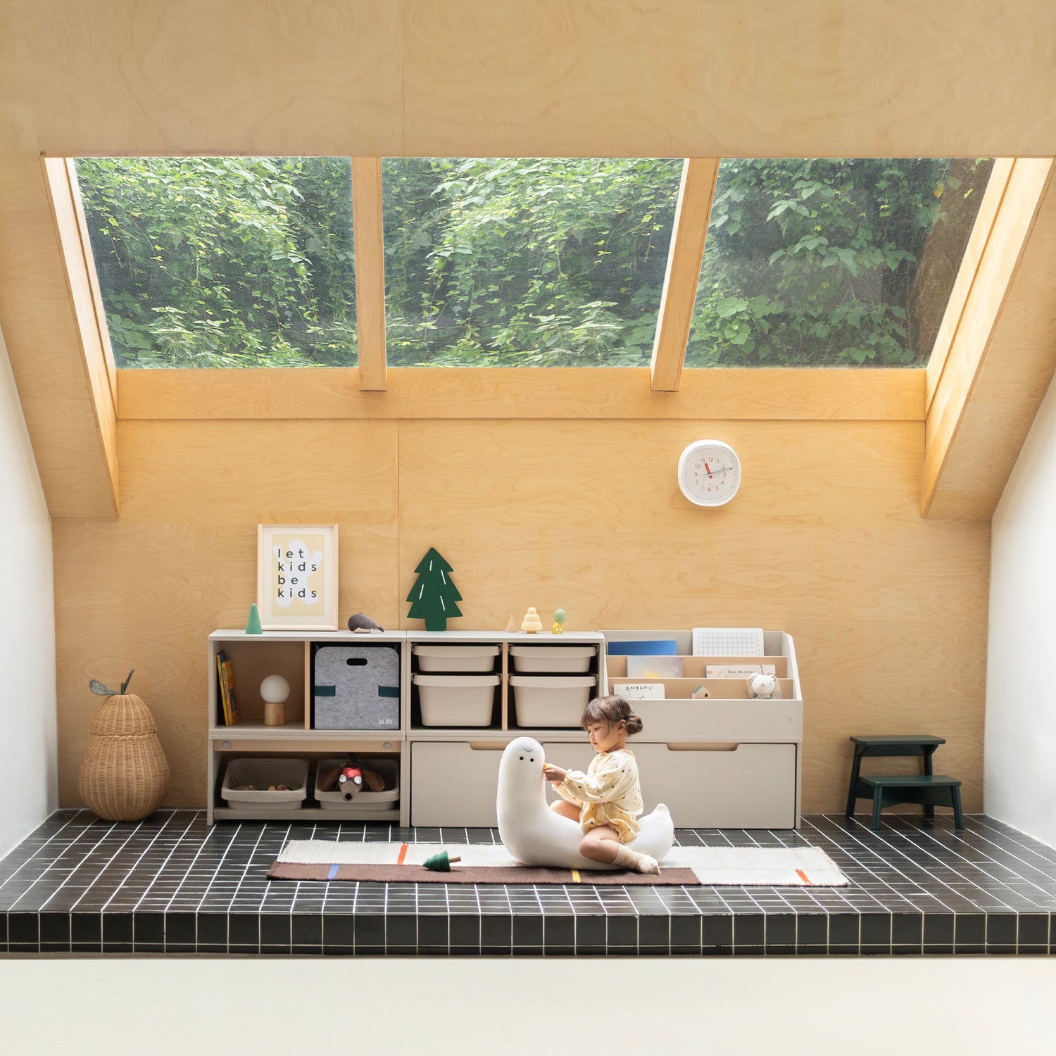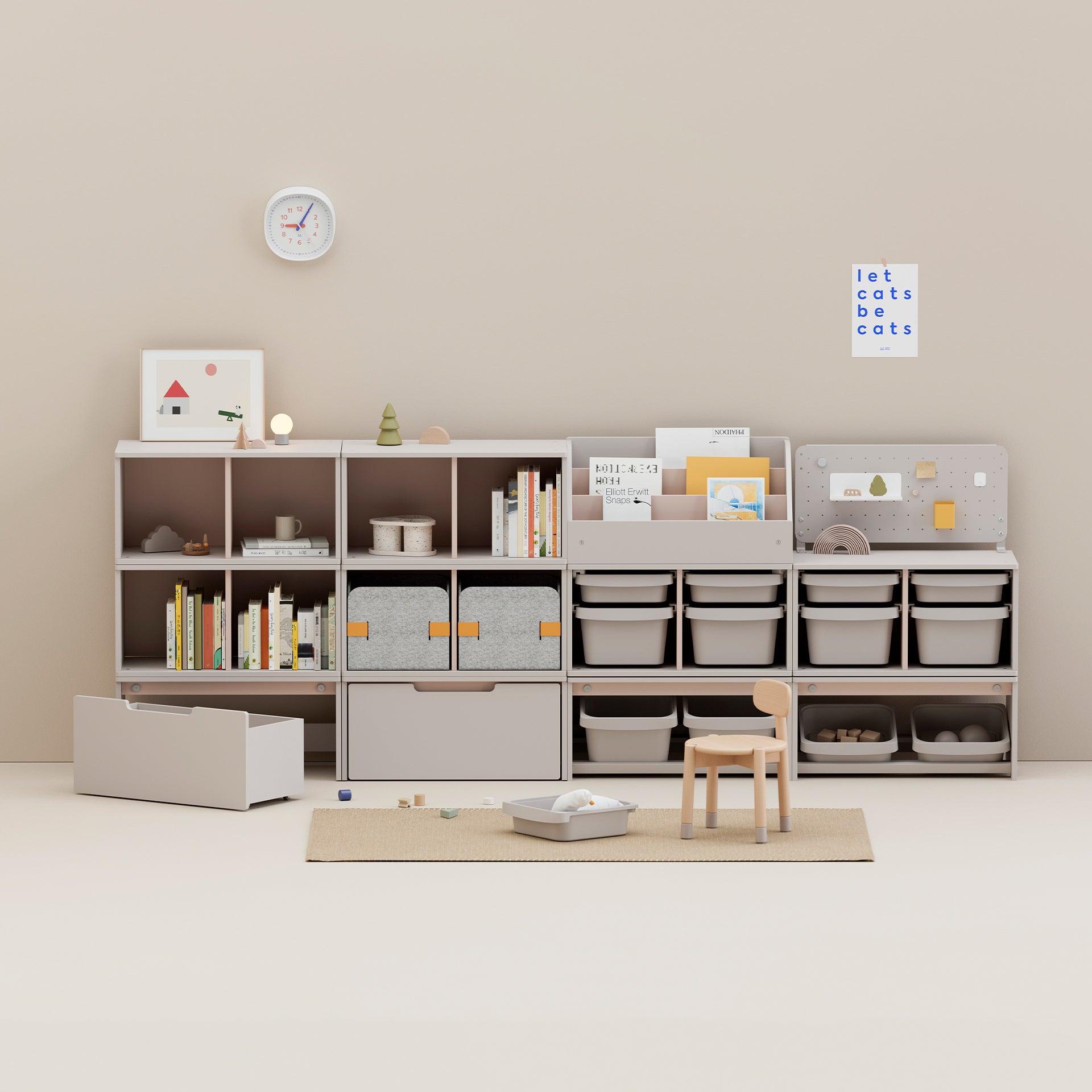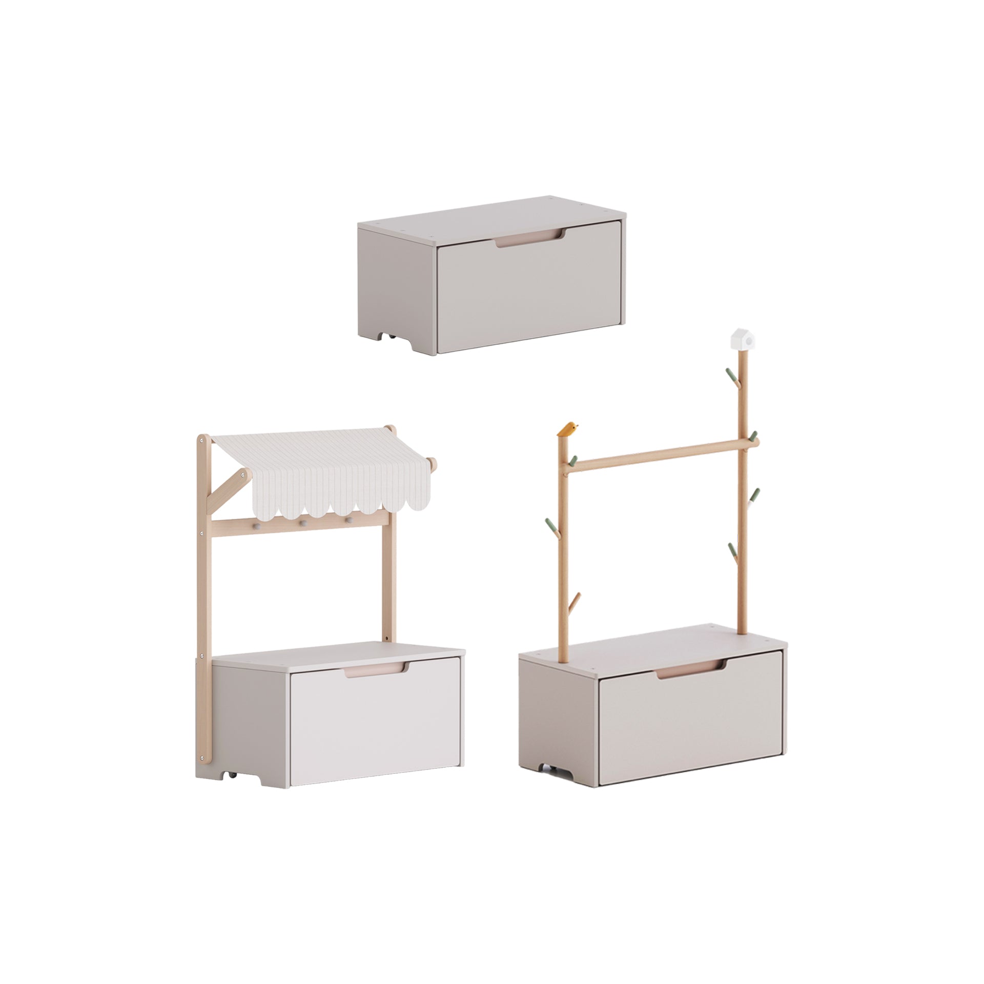 This cabinet is part of a versatile modular system that expands with your family. Start with a single unit for a toddler, then add more cabinets sideways to create a wider play area, or stack them vertically for older children. It is the sustainable solution that will seamlessly last for years. Integrate with a Play Shop Stand and Tree Clothes Rack to transform the storage unit into a fun and imaginative zone.