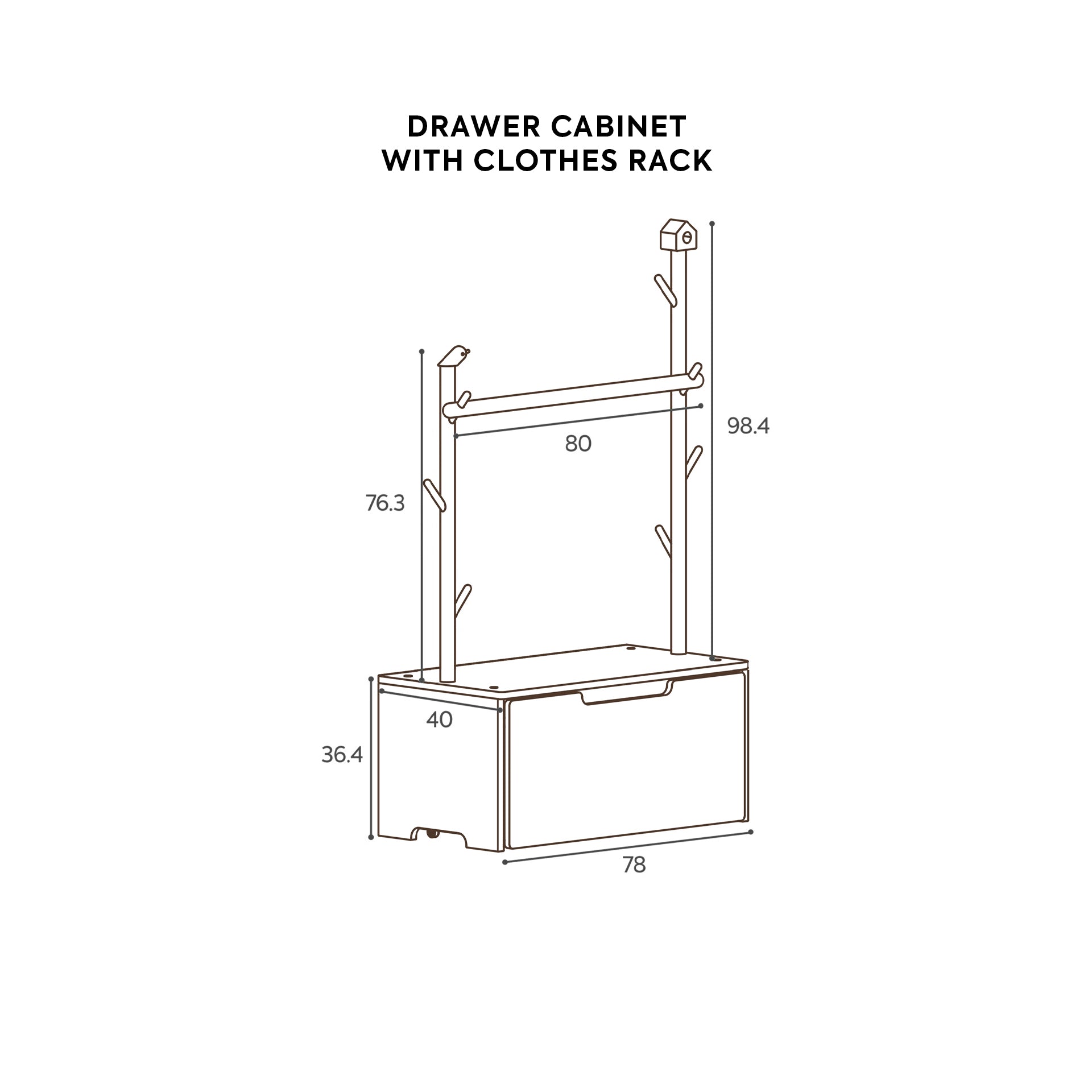- Drawer Cabinet with Tree Clothes Stand: 80W × 40D × 134.8H