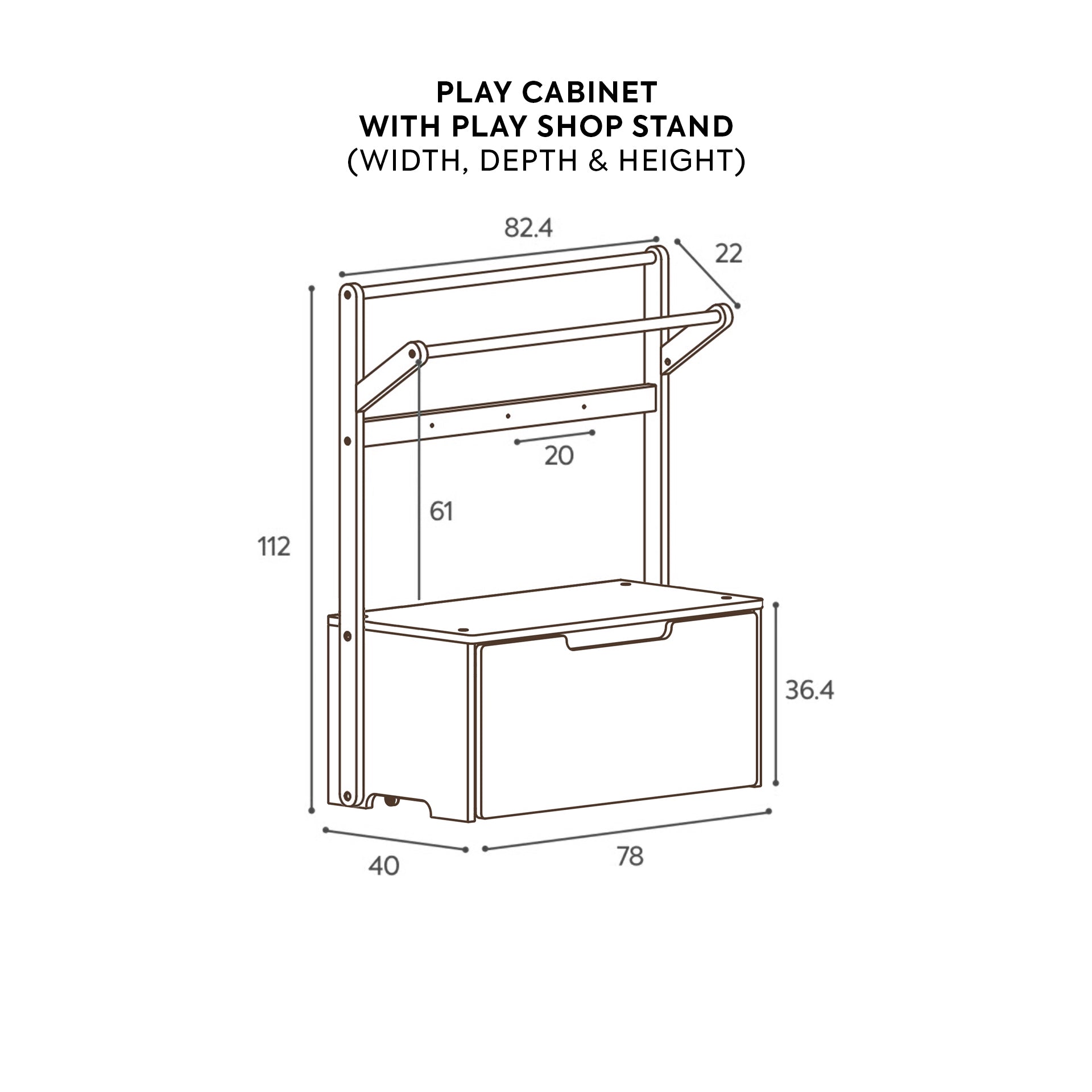 • Play Cabinet with Play Shop Stand: 82.4W × 40D × 112H