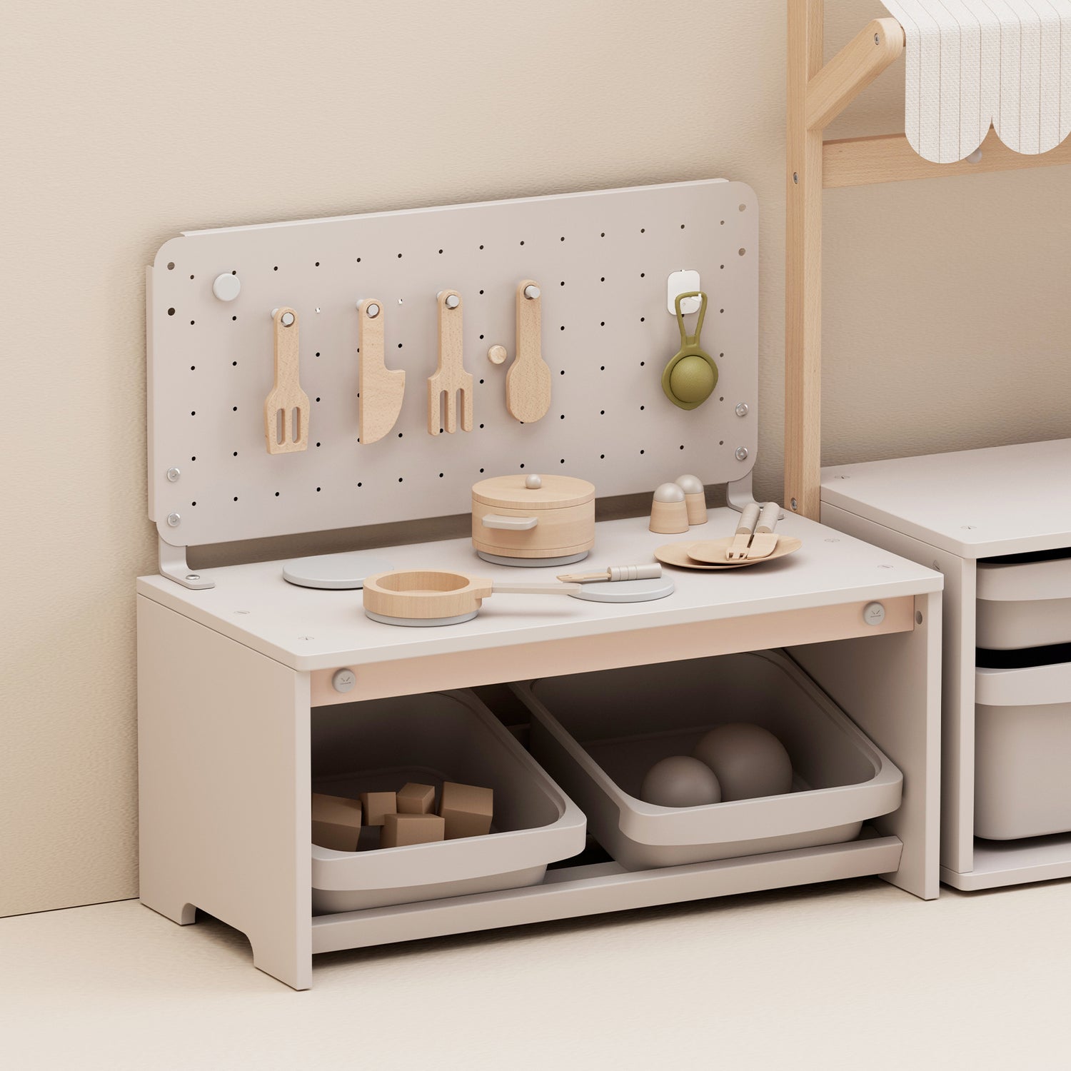 This versatile pegboard transforms your Flex, Drawer, or Play Cabinet into a customizable activity hub. It’s a great way to spark creativity and imagination, think of a "Little Kitchen" or a space for organising tools. It encourages concentration through hands-on, real-life experiences.