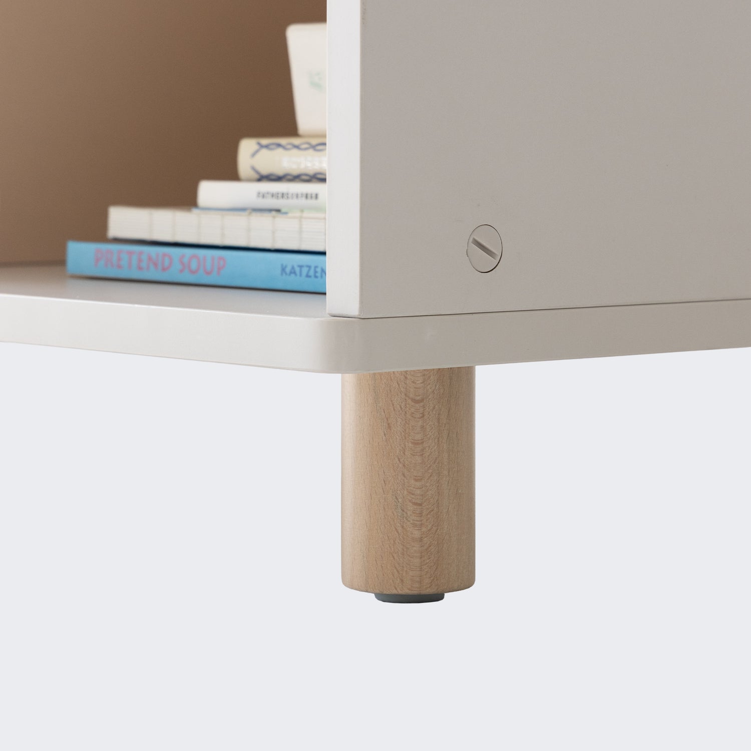 Add effortless mobility with Locking Wheels to transform any cabinet into a flexible play trolley. Alternatively, use the Solid Wood Legs to elevate units by 8cm to match your child's growth and ensure long-term accessibility.