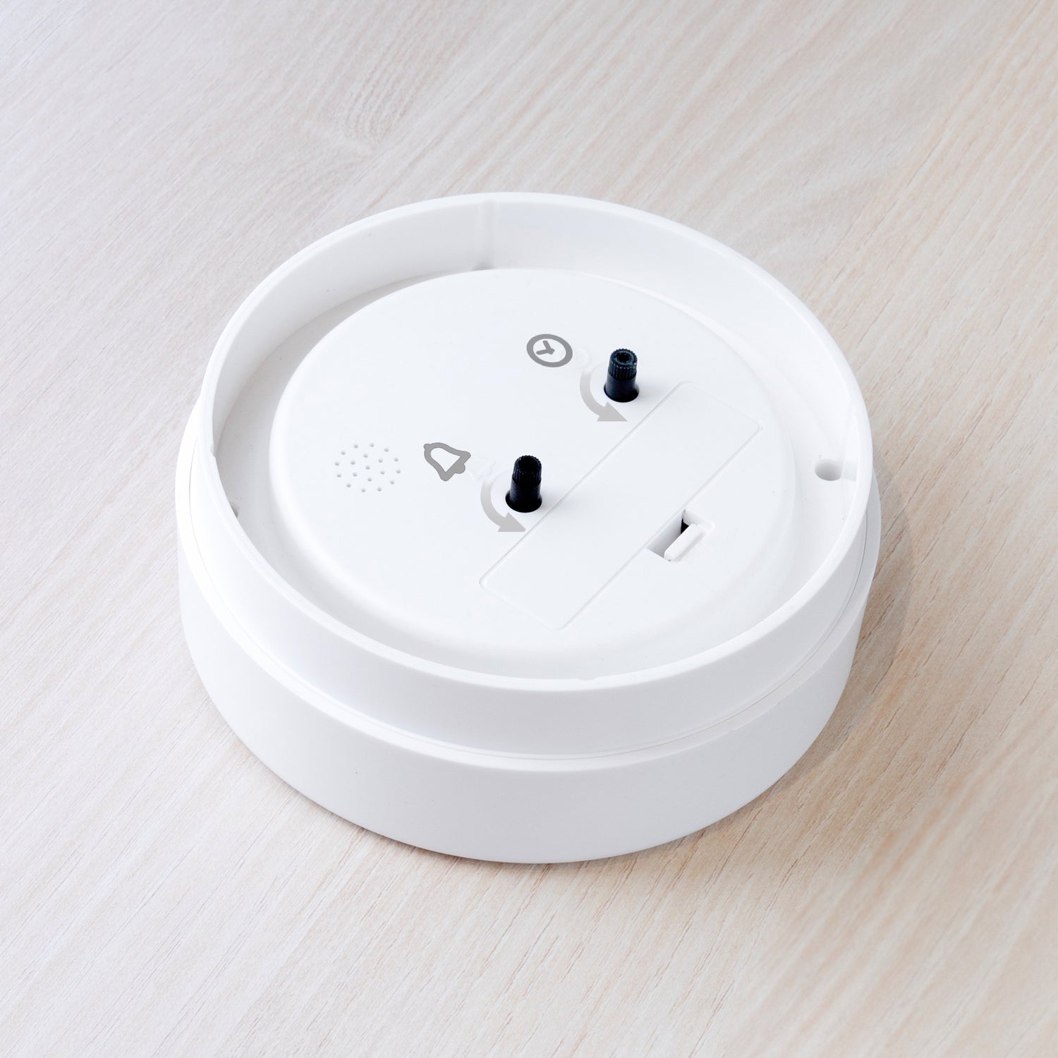 Setting the alarm is as easy as turning a simple knob. The thoughtful design keeps the battery safely hidden behind a protective cover, so little fingers can’t get to it. It’s intuitive for kids and a total lifesaver for parents.