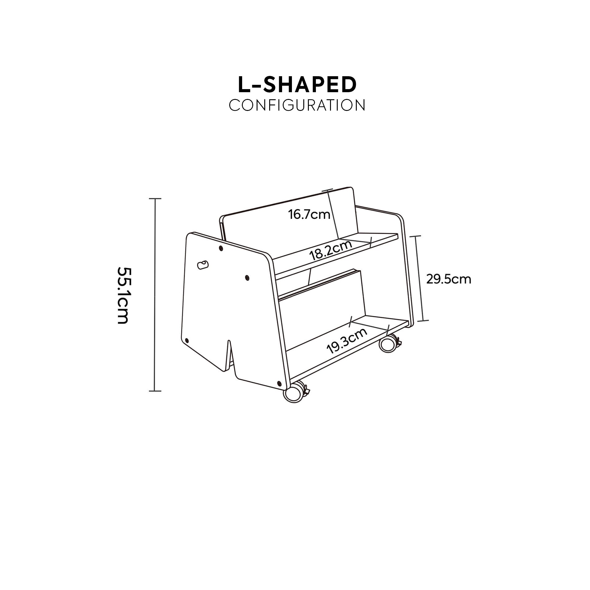 Our Little Pants Mobile Montessori can transform into 3 different shapes, making it perfect for various spaces. Its rounded edges and large capacity make it easy for kids to organize their books independently.