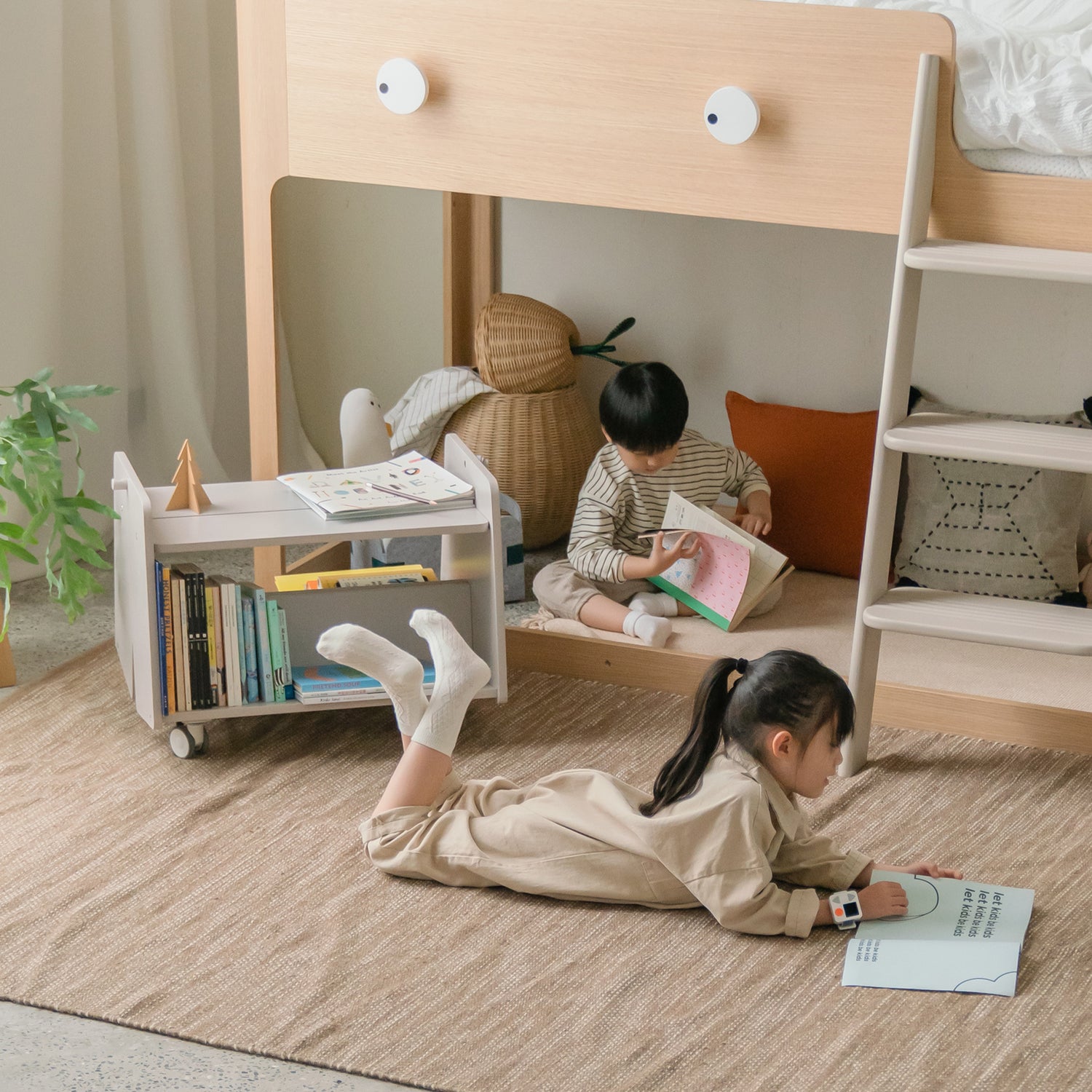 Bring their reading world to life! This bookshelf moves effortlessly across any room with its smooth, silent, and lockable wheels. Designed at the perfect height for a child, it puts their favourite books within easy reach, fostering a love for reading on their own terms.