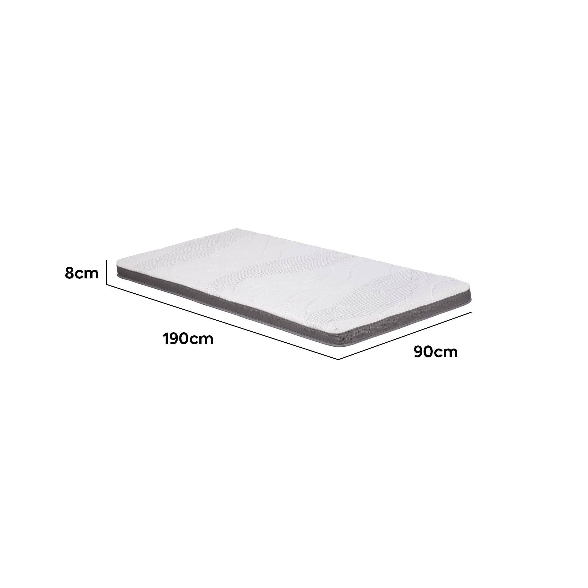 • 0.9x1.9m: 190L × 90W × 8H