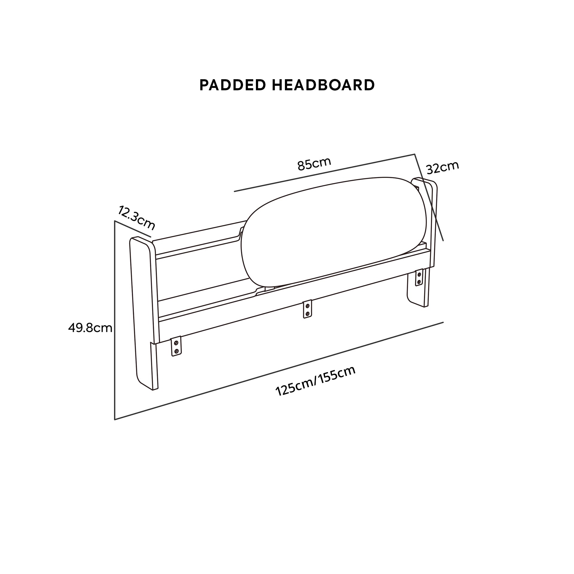 • Padded Heaboard - 1.2m: 125W × 12.3D × 49.8H