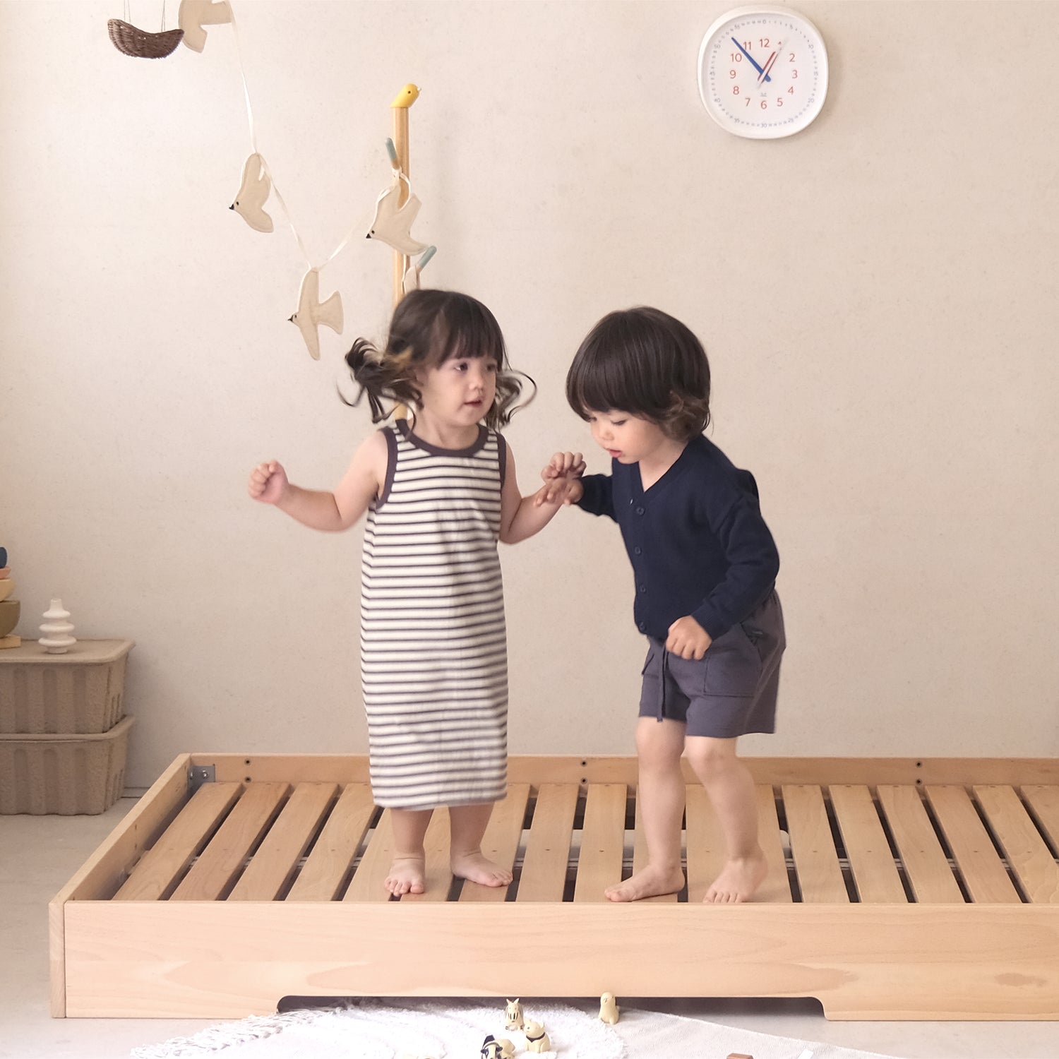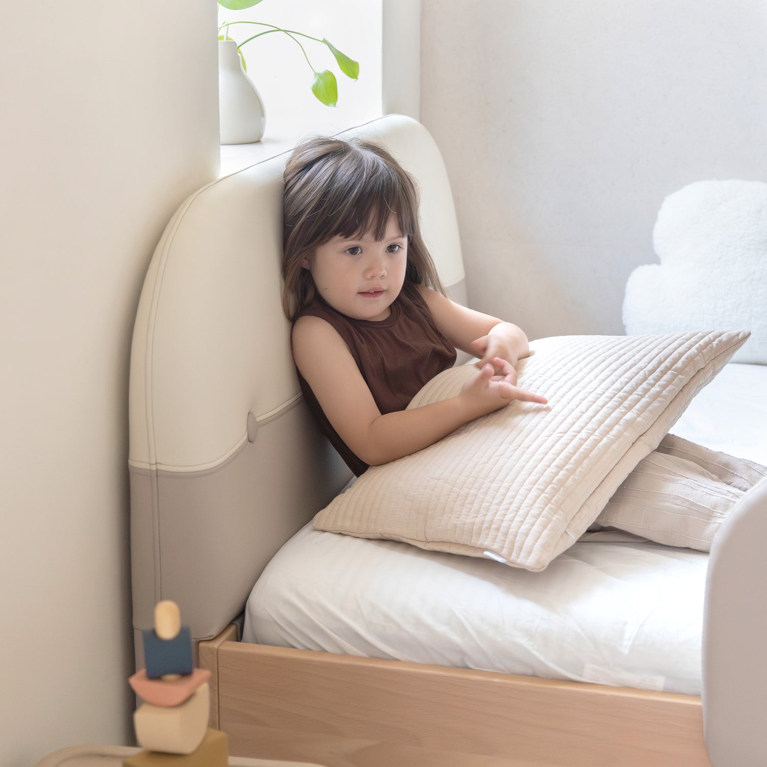 Maria Montessori defined this philosophy simply: "The child must have the right to sleep when he is sleepy, to wake when he has slept enough, and to get up as he pleases." Tired of furniture they’ll outgrow? This bed is the solution. The No. 1 Montessori Bed with Colourblock Padded Headboard is a timeless, modern design that grows with them into adulthood. We promise safe and sustainable comfort with upholstery that shrugs off years of wear and is a breeze to clean.