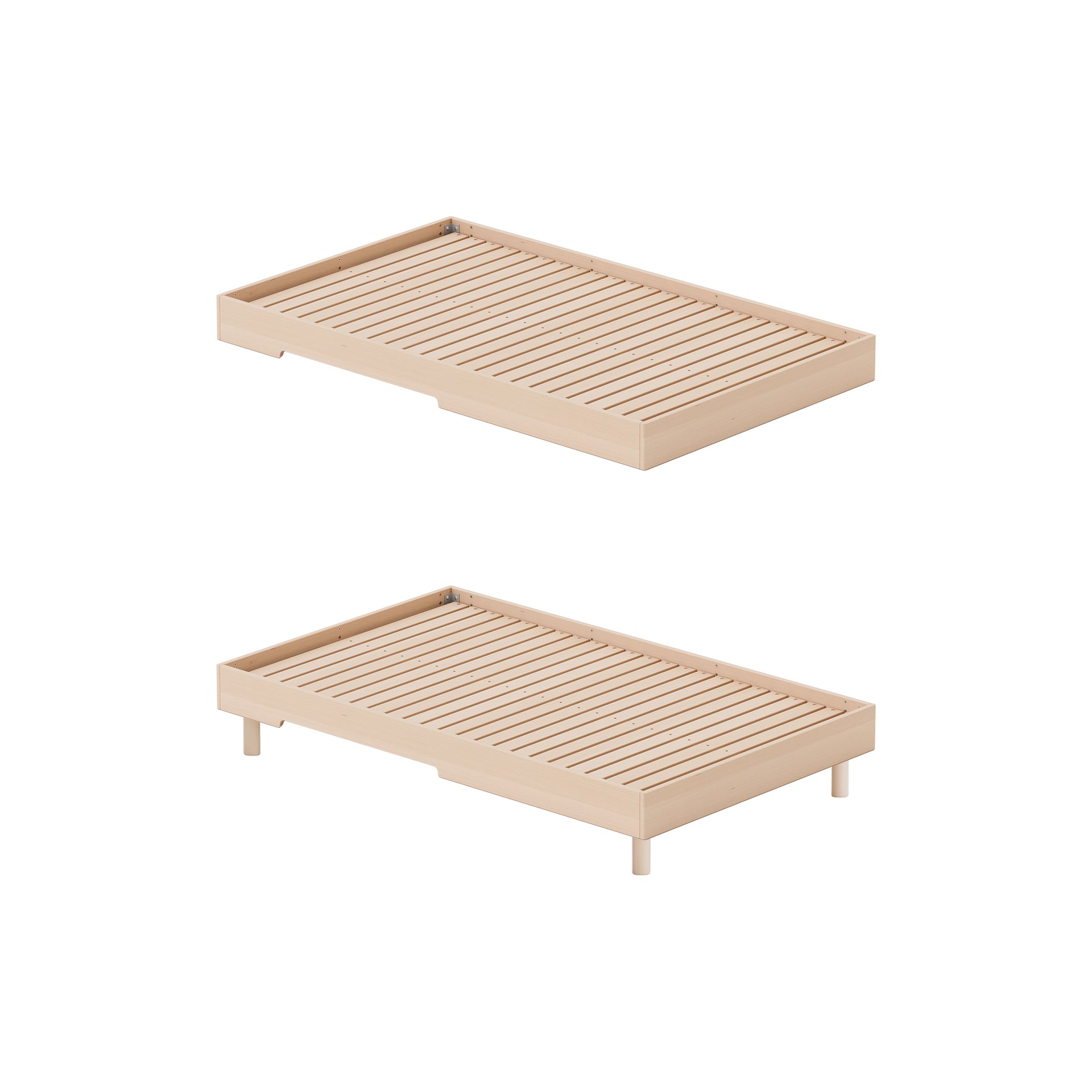 We use traceable German Beech, which is the preferred hardwood by European craftsmen for its fine grain and durability. Thanks to our proven structure, including 23 thick, solid slats, this bed won't budge. That's a certified 1000kg load capacity for your peace of mind.