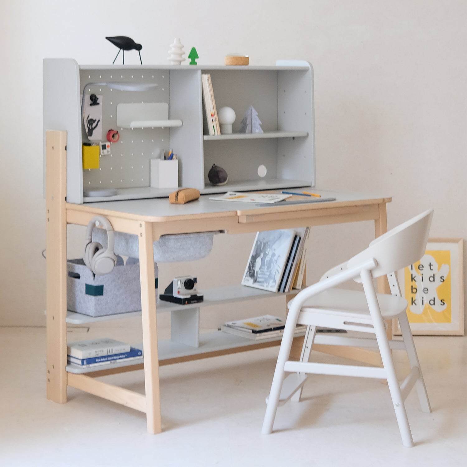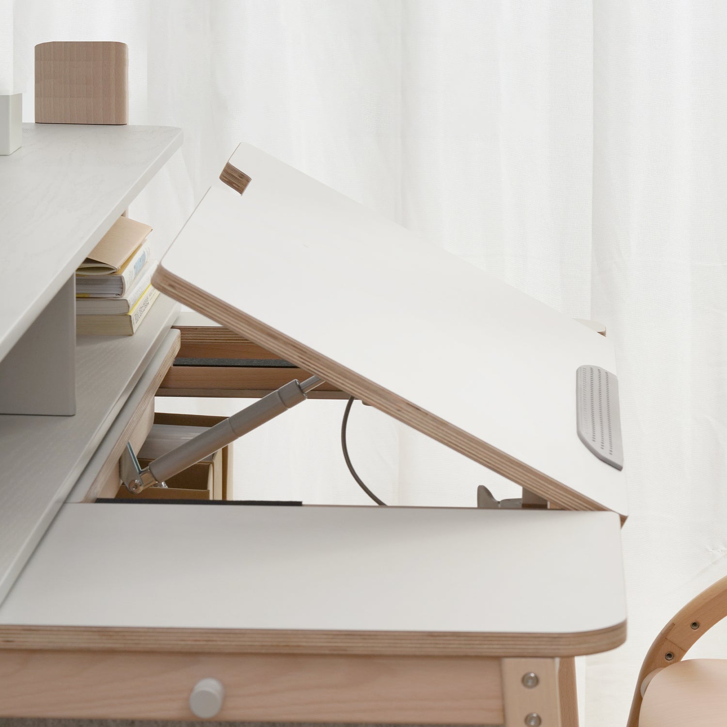 A non-glaring tabletop is designed to be gentle on the eyes. The smooth, silent movement of the desktop and the solid wood hooks for bag storage are just a few of the thoughtful details that work together to create an organised and distraction-free learning companion that will last.