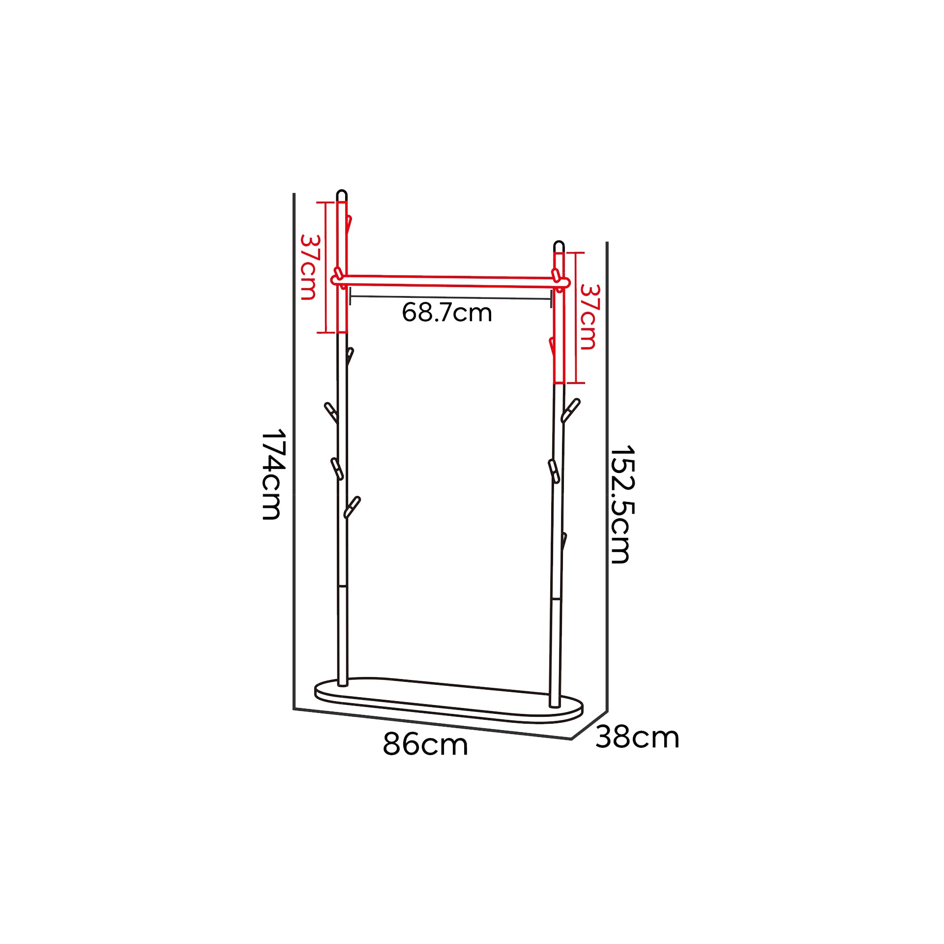 With a sturdy, 2.2cm thick solid wood base that ensures non-tipping stability. It also boasts a reliable 35kg total load capacity, securely holding even heavier clothing without a worry.