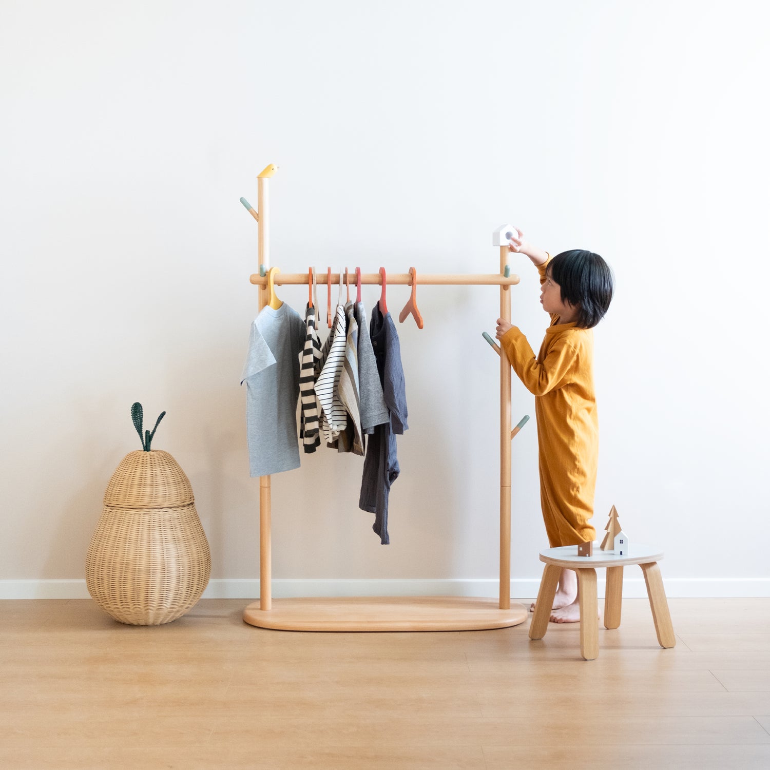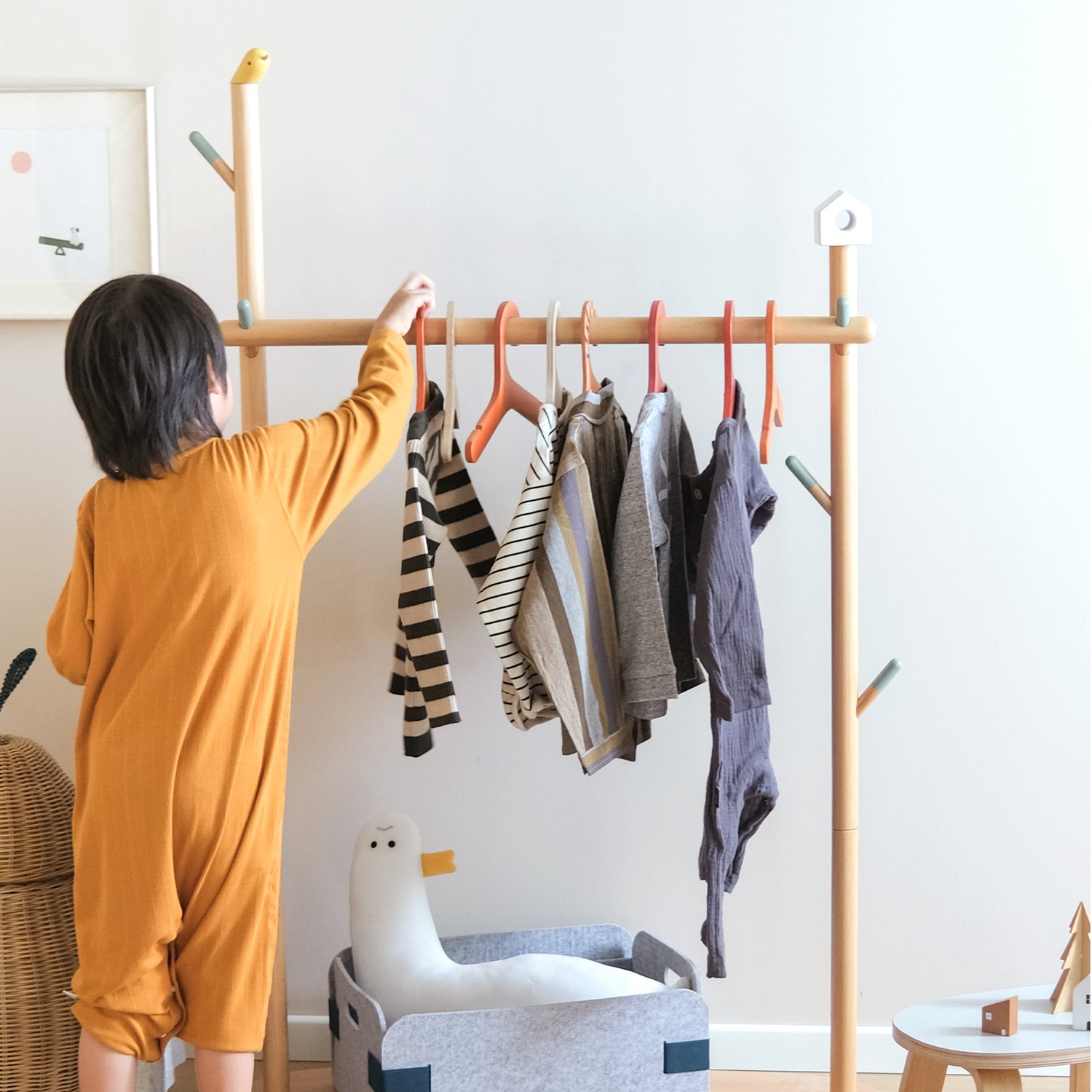 A tidy space helps your child feel confident and independent. The Tree Clothes Rack is a smart, open-style solution designed to make organising their outfits a fun, everyday habit. With its beautiful, solid wood design and clever, adjustable height, it’s a long-lasting piece that will grow with your child's style from their first steps to adulthood.